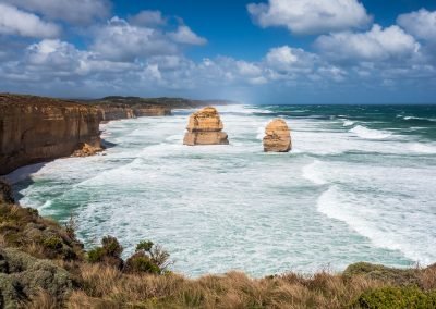 The jewel in the crown of the Great Ocean Road is the coastline sight of The Twelve Apostles. These rise up from the ocean in defiance to the forces of nature to create a specular sight.